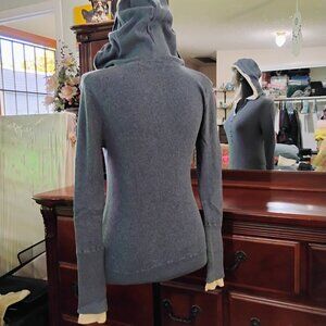 Blue Knitted Long Sleeve, Button Down V-Neck and Hoodie Cardigan by Moda International, size Medium in excellent condition