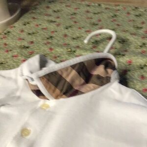 Beautiful white Burberry polo shirt. It’s only been worn a few times, so it’s in great shape! The shirt is 21”from armpit to armpit and 27” from shoulder to hem.