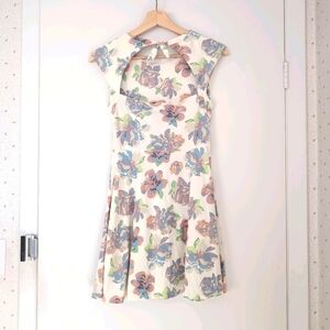 Cute floral dress with a cut out design on the back. Stock photo is for fit reference only, I am selling a different colour. Flaw: a small stain on the front of the dress.
