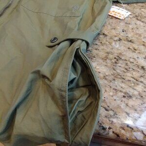Jumpsuit style; cargo leg and chest pockets; cinched wrist and ankle hems;