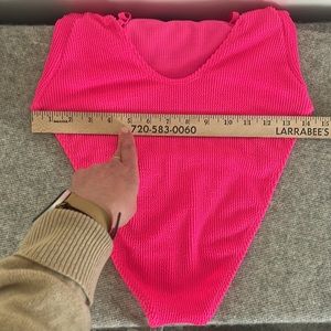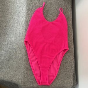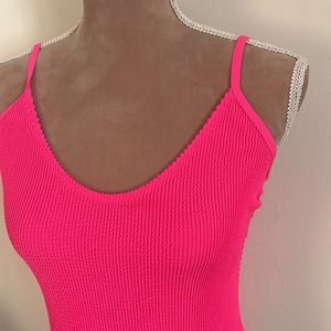 Good American Swimsuit, Sz 3/4 neon pink with cool texture.