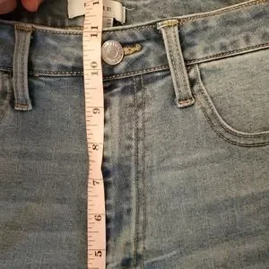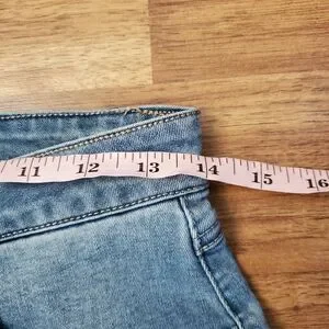 This is a pair of size 29 Forever 21 stretch high rise light wash cuffed stretch jean shorts.