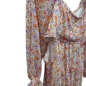 Beautiful flowy flowered dress. NWT Size Large multicolored - peach, lilac, pink, green Measurements