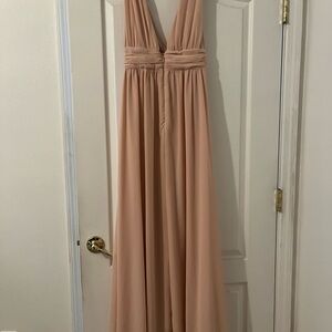 Used once for a wedding. Washed but still has some discoloration at the end of the dress (shown in pictures).