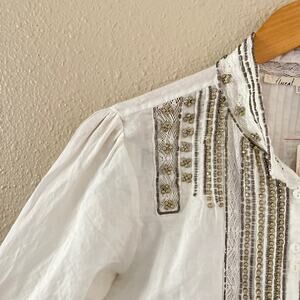 NEW Anthropologie Floreat Cleo Embroidered Beaded Button shirt