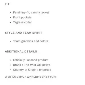 The Wild Collective Chicago Bears Varsity Jacket Unisex Small