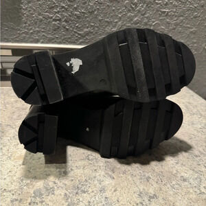 Annabella Black Leather Mid Calf Chunky Y2K Boots Size 7.5/38