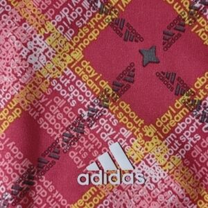 The crisscross patterned small print says, "I dream about sports all day" and "adidas"