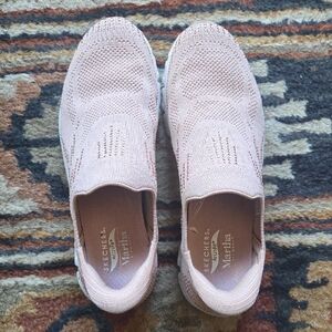 I wore a thin trouser sock with them and the slid right on. I had foot surgery and now I can't wear them. boohoo. They are so cool.