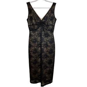 Laundry By Shelli Segal Sleeveless Nude Dress With Black Lace Overlay- Size 8
