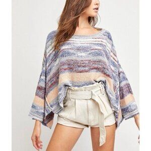 NWT Free People Multicolored Soft Knit Poncho Sweater