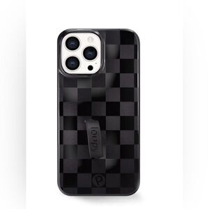 Inside has open pocket on front & zipper pocket on the back, along with small slip pocket on side.