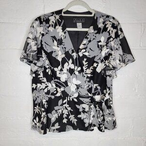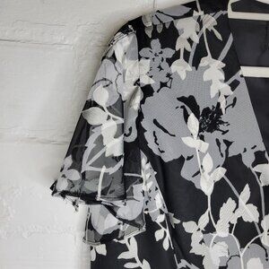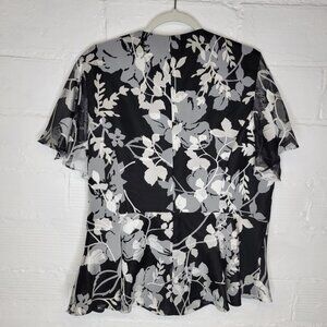Alex Evenings Women's XL Jacket Black Silver Flowers Short Sleeve