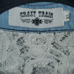 Crazy Train Lace and Denim Pearl Snap Button Up XL