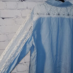 Crazy Train Tops | New Crazy Train Denim & Lace Top, | Color: Blue/White | Size: XL