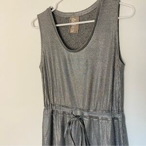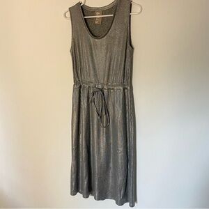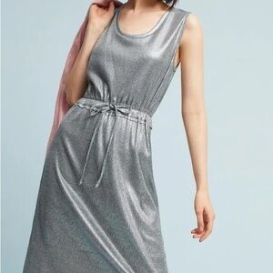 Dolan Anthropologie Silver Metallic Midi Dress Drawstring Waist, Ribbed Sz S