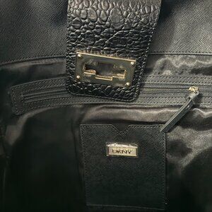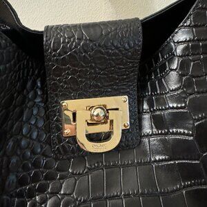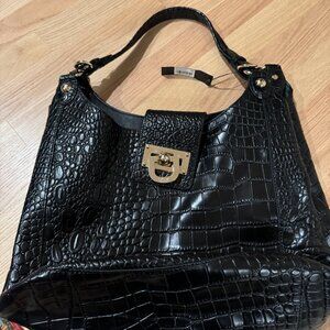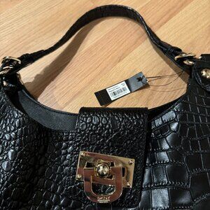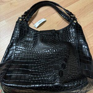 NWT DKNY Black Crocodile Embossed Leather Hobo Bag