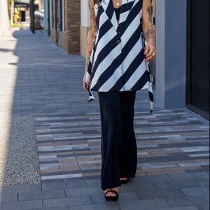 These trousers feature a high waisted construction, wide legs with front splinters, front hidden zipper with button closure. Perfect for work and play, wear these ultra-high waisted trousers with a flowy crop or a casual top and your favorite sneakers for a casual look.