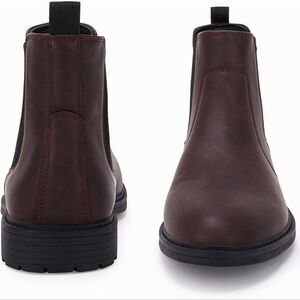 (67-4143) Coutgo Men's Ankle Boots Chelsea Round Toe Slip on Waterproof Faux Leather Classic Dress Booties Sz 11.5