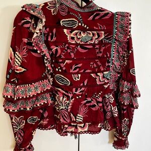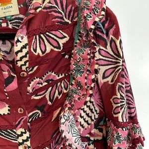 Farm Rio button down, poplin style top for sale. Ruffled sleeves. Originally purchased fall 2023 and worn just twice. Excellent condition.