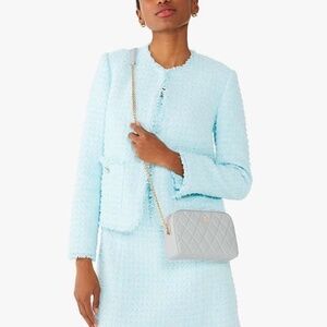 This comes gift box ready though i believe retailer displayed this with the box open. There are a few dot indentions on the wallet which may be fixed with some heat and surface scratches on the wristlet.