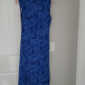 Sleeveless blue Donna Ricco dress. Silky-like fabric. 41 inch length. size 10