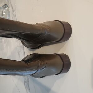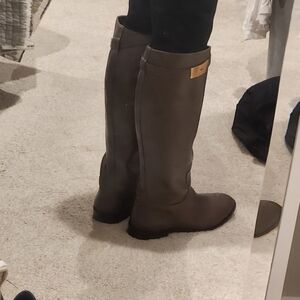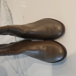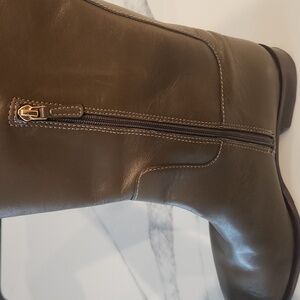 Tory Burch Boot. No box. Olive brown leather. Rubber and leather soles. Gold hardware. Side zipper for ease on and off. Almond toe. Gorgeous!