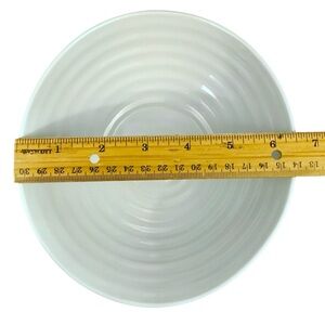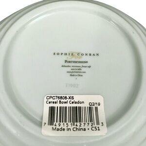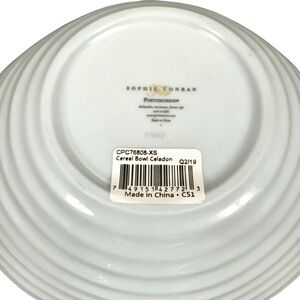 Pair of two (2) Sophie Conran by Portmeirion Celadon Green Cereal bowls. Oval with a ribbed, organic shape. Measures 7.25” wide in long end, 6.5” on shorter width, and approximately 2.5” tall. Stickers are dated 2019.