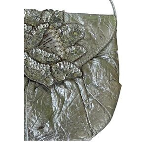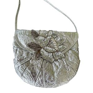 VTG 80s Silver Metallic Textured Purse Pocketbook Sequin Floral Applique NYE …