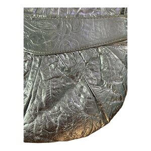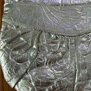 This is a vintage 1980s silver metallic textured pocketbook/shoulder bag. It belonged to my mom, who is cleaning out her closets.