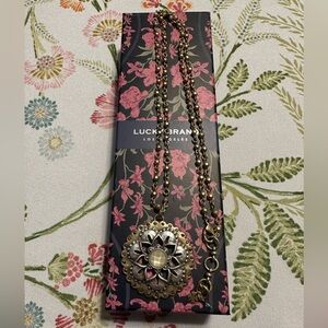 Lucky Brand Gold tone mixed medium medallion statement Necklace. New.
