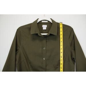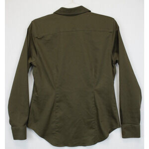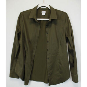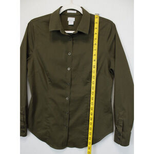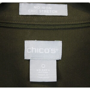 Chico's Size 0 Button Front Top Women 4 No Iron Chic Stretch Long Sleeve Collared Olive