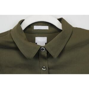 Chico's No Iron Chic Stretch Button Front Top Women 4 Long Sleeve Collared Olive