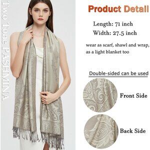 Ethnic Design - Two tones paisley scarf, both elegant obverse side and reverse side. The elegant jacquard design can be worn as a wrap with a evening dress, or casual daily look.