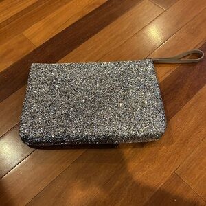 Old Navy Glitter Wristlet Silver Sparkle Glitter Top Zipper Clutch