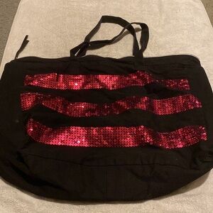 Brand : Victoria’s Secret • Extra Large / Soft - • Pink Glitter Zipper Overnight Bag • No Rips - Tears • Measurements : 25” Across 14” Down