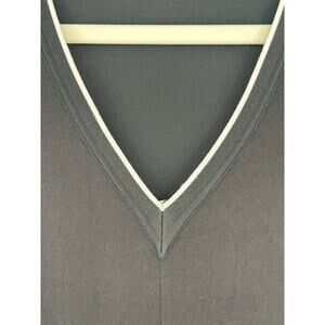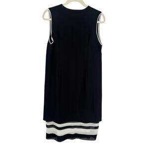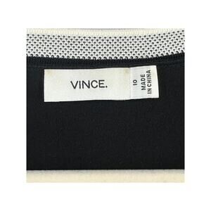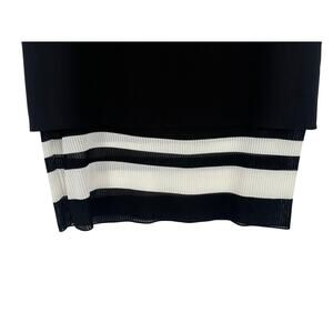 Vince Sleeveless Knit Midi Dress Black & White V-Neck Striped Mesh Hem Size 10