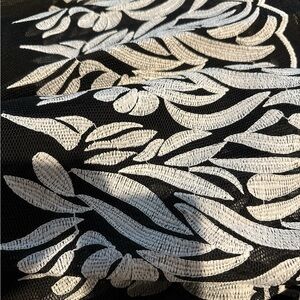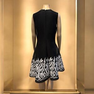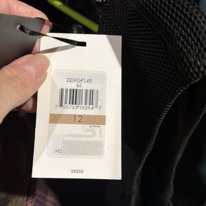 Absolutly gorgeous dress with lining and flared bottom. Very comfortable and stunning when on. Comes from a smoke free home. Stored in a garment bag for safe keeping. I lost weight so it is a little big on me now. Great for the holidays.