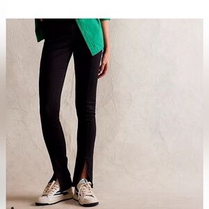 Features: Pull-on style, back pockets, wide waistband, raised seam detail, skinny legs with slits at both hems