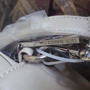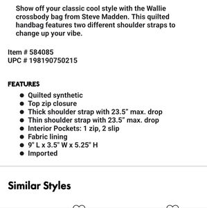 Steve madden new tagged dust cover two straps tagged looks like an expensive bag really pretty taupe silver accents 😍 size and what strap size is and what made of look up on pictures inside black bag taupe gorgeous and dust cover ✨️