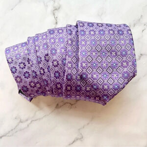 Duchamp Purple Blue Floral Geometric Men’s Silk Tie Hand Made in England