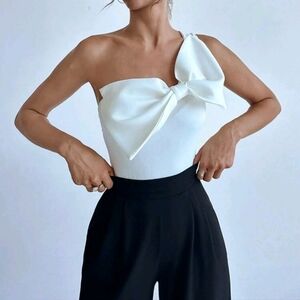 Women's Elegant One Shoulder Bodysuit With Bowknot