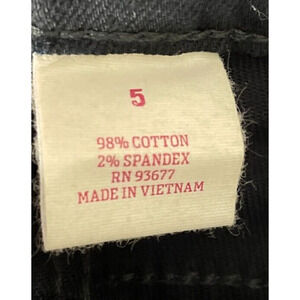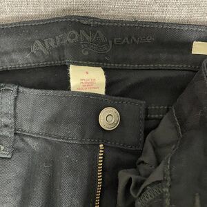 Elevate your denim game with these Arizona Jean Co. Super Skinny Denim in size 5. These black jeans feature a solid pattern and a 5-pocket design, with a zip and button closure. The cotton blend fabric is comfortable and stretchy, making them perfect for any season. The slim fit and medium wash provide a flattering look, while the belt loops allow for easy styling with your favorite belt. Machine washable for easy care, these jeans are a must-have addition to any casual wardrobe.