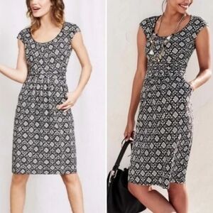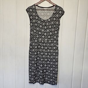 Boden Margot Scoop Neck Cap Sleeve Jersey Black White Print Midi Dress Sz 8L