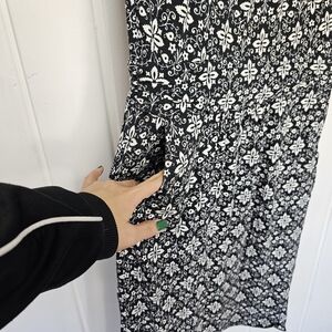 Lovely Black and White all over pattern with cap sleeves and scoop neck midi dress with pockets