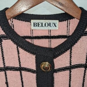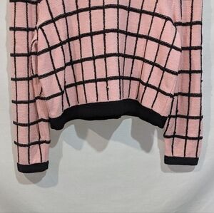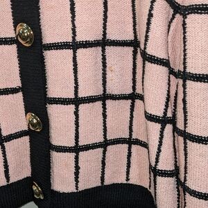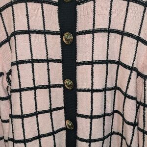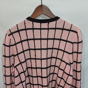 Vintage Beloux Classic Pink and Black Windowpane Cardigan Sweater Size M