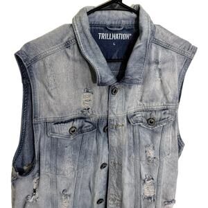 TRILLNATION MENS BLUE DENIM VEST SIZE LARGE