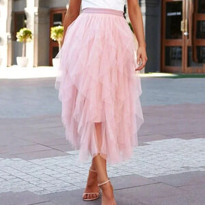 Dusty Pink Elegant Women's Layered Hem Mesh Overlay Skirt