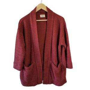 POL Blue White Striped Long Duster Cardigan Sz L Pocket Cottagecore Relaxed Fit