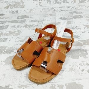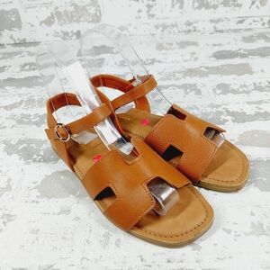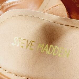 New Steve Madden Haydin Cognac Faux Leather Buckle Sandals B619